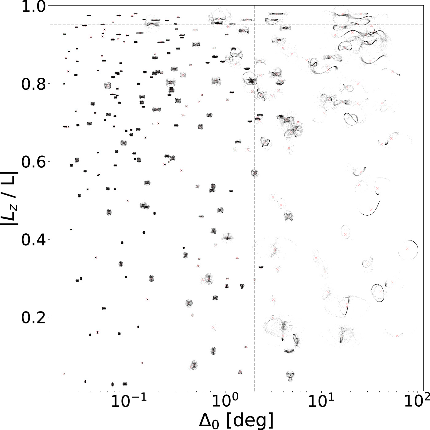 A cloud of points that starts tightly packed in phase space and gradually disperses provides a useful analogy for the evolution of tidally escaped stars from globular clusters into stellar streams. At first glance, Fig. 16 may appear to show the time evolution of a single stream, but it actually depicts different orbital solutions. The visual similarity highlights that both phenomena are governed by phase mixing.